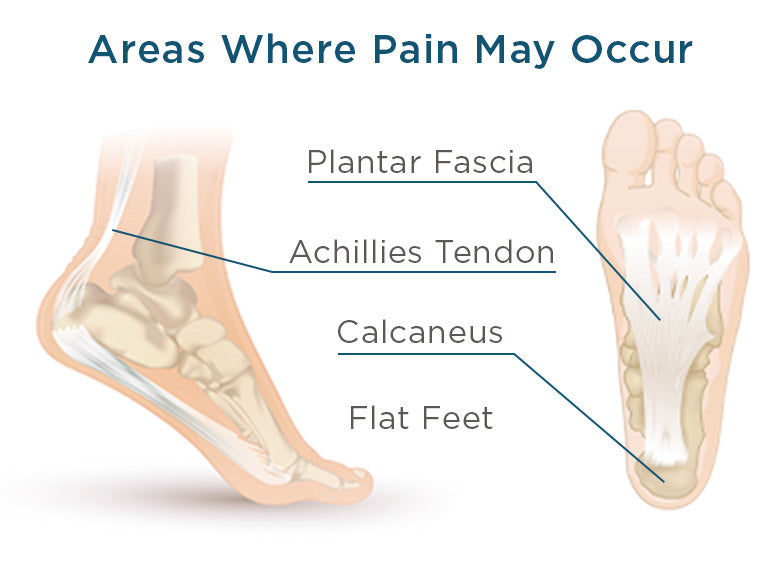 With plantar fasciitis, understanding where your pain is coming from is the first step to finding a solution. There are several areas of the foot where you might experience symptoms of plantar fasciitis. See if you can pinpoint the pain with this chart and be sure to consult a doctor if it continues.